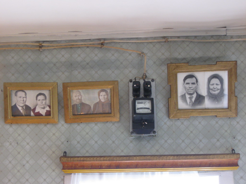 Фотографии на стене в доме П. Я. Дьячковой – она с мужем в молодости, родители мужа, родители П. Я. Дьячковой