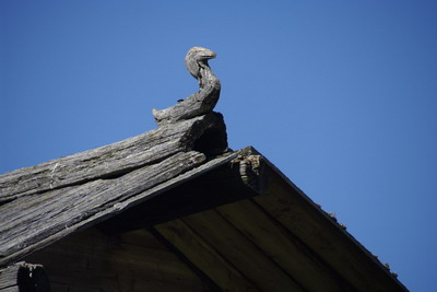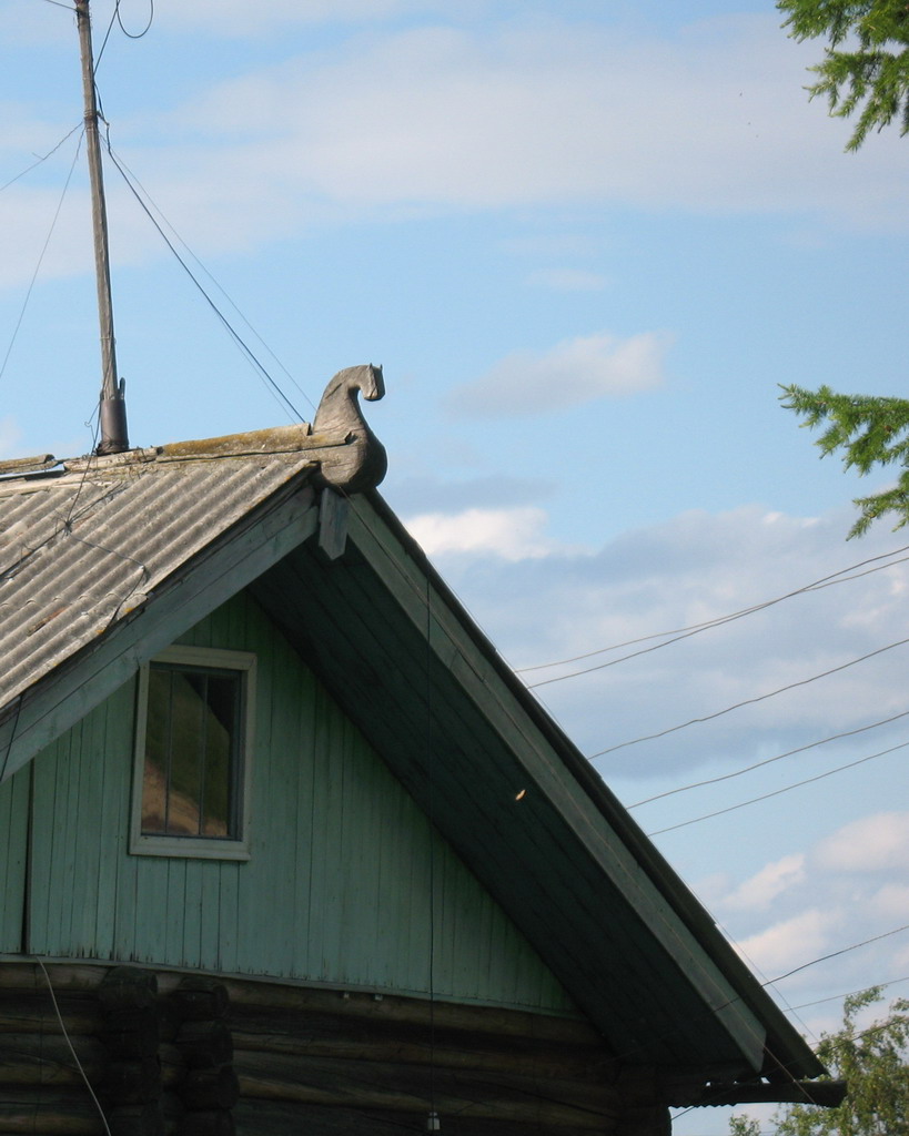 Главное украшение местных домов – конек на крыше. Это не случайно. Завершение деревянного дома, кровля, имеет глубокий символический смысл, олицетворяя собой небо и в то же время кров, укрытие. Поэтому украшение в виде стилизованного изображения коня – одного из солярных символов и символа устремленности вперед – встречается на Русском Севере довольно часто.