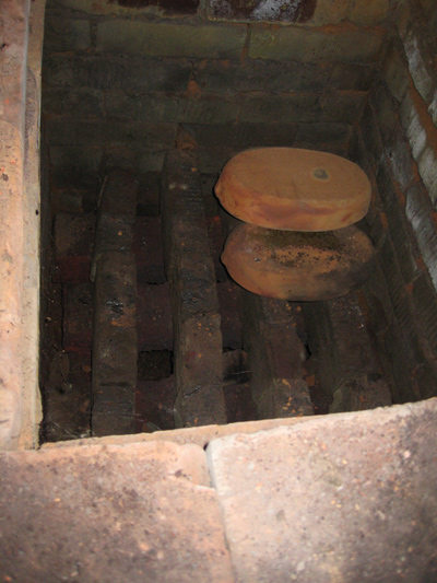 Печка заполняется изделиями целиком, до самого верха печки, как показано на фотографии. Печь накрывают железным листом.